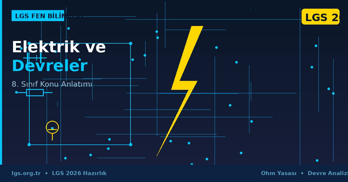 Elektrik ve Devreler konusu, LGS Fen Bilimleri sınavında oldukça geniş bir yer tutmaktadır. Temel kavramları sağlam öğrenmek; Ohm Yasasını ezbere değil anlayarak uygulamak; seri, paralel ve karma devreleri şema üzerinde çözme alışkanlığı kazanmak başarının anahtarıdır. Güç ve enerji formüllerini farklı devre türlerine nasıl uygulayacağınızı öğrenirseniz soru tiplerinin büyük çoğunluğunu kolayca çözebilirsiniz.